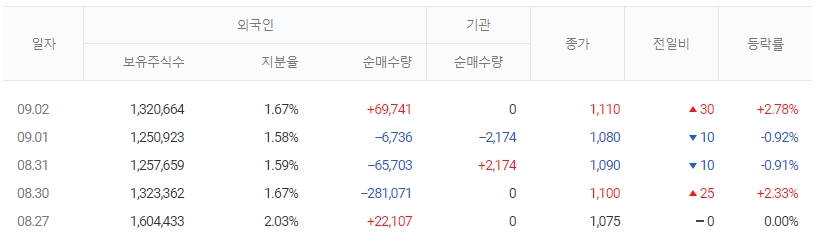 | 발행주식수/유동비율 | 79,138,942 / 69.58 | 외국인지분율 | 1.67 |