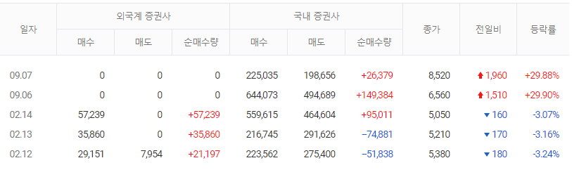 | 거래량/ 거래대금 | 649,614 / 42 | 시가총액 | 1,913 |