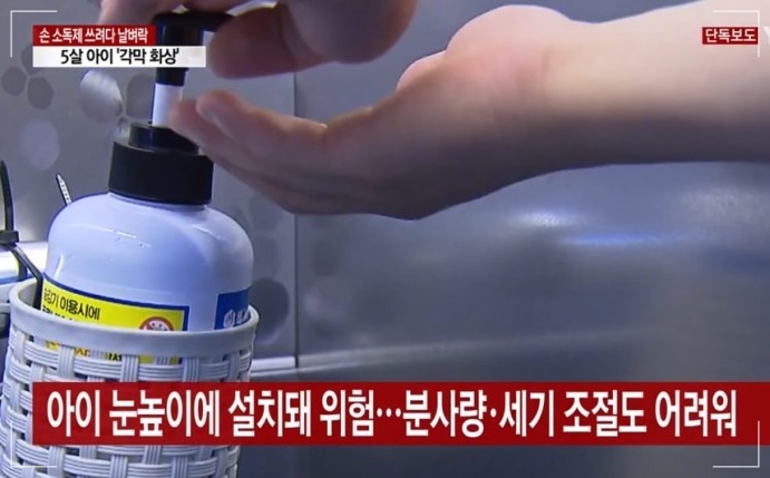 최근 5살 어린이가 아파트 엘리베이터에 비치된 손소독제를 사용하려다가 소독제가 눈에 튀면서 각막 화상을 입은 사례가 보도됐습니다. 병원 정밀검사 결과 아이의 까만 눈동자 부분 각막이 알코올 성분 때문에 벗겨진 상태로 하마터면 시력에 큰 손상을 입을 뻔한 사고였습니다.