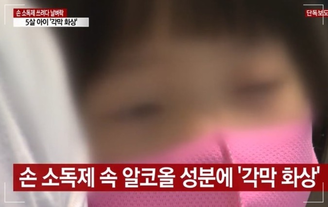 5살 어린이 손소독제로 각막화상