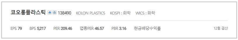 코오롱플라스틱은 시가총액 6270억원이며 액면가 1000원입니다.