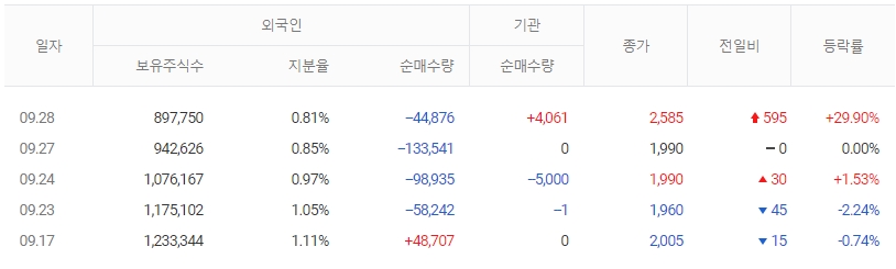 | 52Weeks 최고/최저 | 2,990 / 1,075 | 액면가 | 500 |