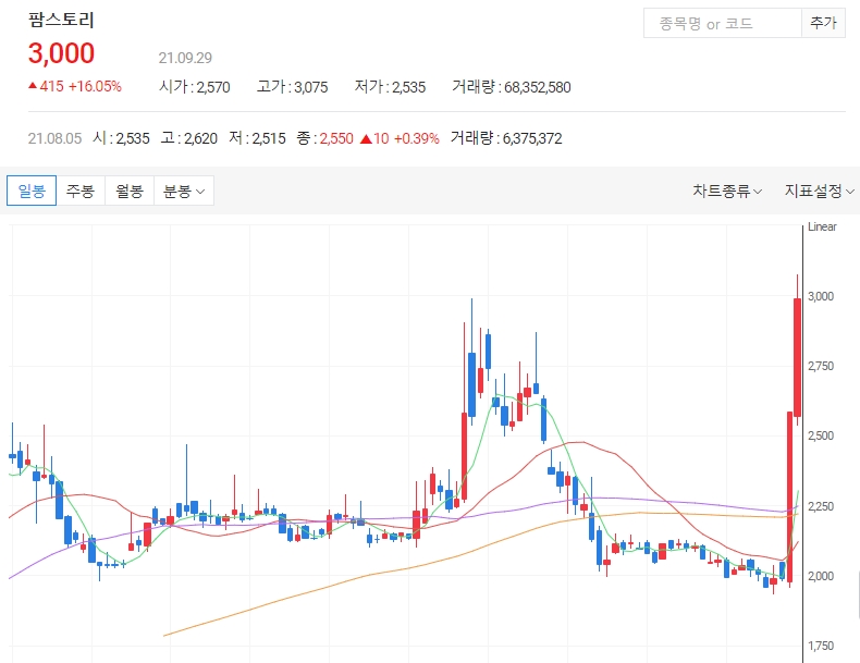 팜스토리의 주가가 약 30% 오르며 상한가를 달성하자 투자자들의 눈길이 쏠리고 있습니다. 한국거래소에 따르면 지난 28일 종가 기준 팜스토리의 주가는 전날보다 +29.90% 오른 2585원입니다. 오늘은 팜스토리 주가 전망에 대해 알아보겠습니다.