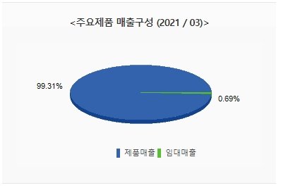 동사의 주요제품 매출 구성비율은 제품매출이 99.31%로전체매출의 대부분을 차지하고 있습니다.