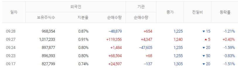 | 발행주식수/유동비율 | 111,861,577 / 47.09 | 외국인지분율 | 0.87 |