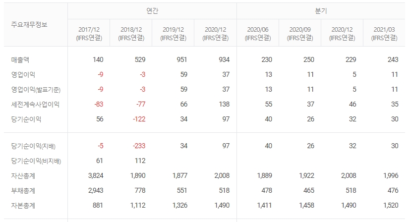 젬백스링크는 1분기 연결 매출액 243억원, 영업이익 11억원, 당기순이익 30억원을 기록했다고 지난달 14일 공시했습니다. 전년 동기와 비교해 매출액은 약 8% 증가했고 영업이익은 21% 늘어난 수준으로 당기순이익은 흑자 전환했습니다.