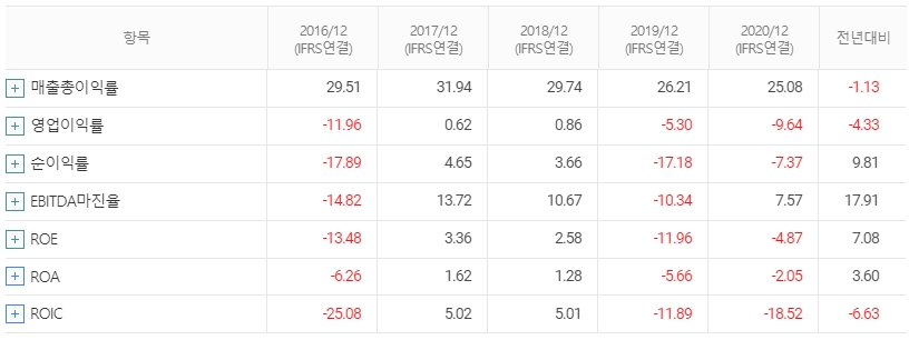 2020년 매출은 3349억원, 영업손실 -323억원, 당기순손실 -247억원을 기록했습니다. 2021년 1분기 매출은 906억원, 영업손실 -27억원, 당기순이익 176억원을 기록했습니다. 1분기 실적의 경우 전 분기 대비 매출은 15.01% 감소, 영업손실은 44.9% 감소했고, 전년 동기 대비 매출은 41.78% 증가, 영업손실은 48.08% 감소 했습니다.