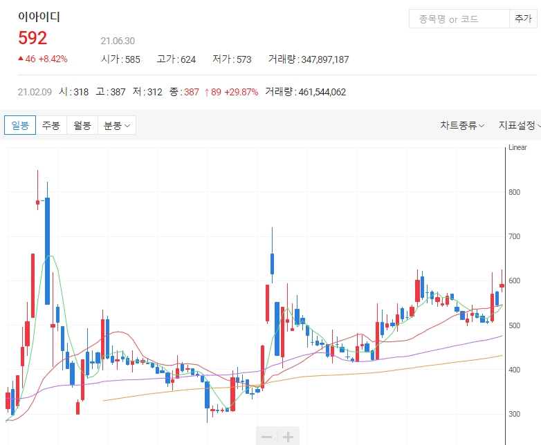 한국거래소에 따르면 이아이디는 30일 오전 10시 20분 전일 대비 51원(9.34%) 상승한 596원에 거래되고 있습니다.